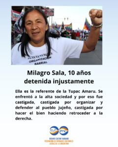 Ella es la referente de la Tupac Amaru. Se enfrentó a la alta sociedad y por eso fue castigada, castigada por organizar y defender al pueblo jujeño, castigada por hacer el bien haciendo retroceder a la derecha.
