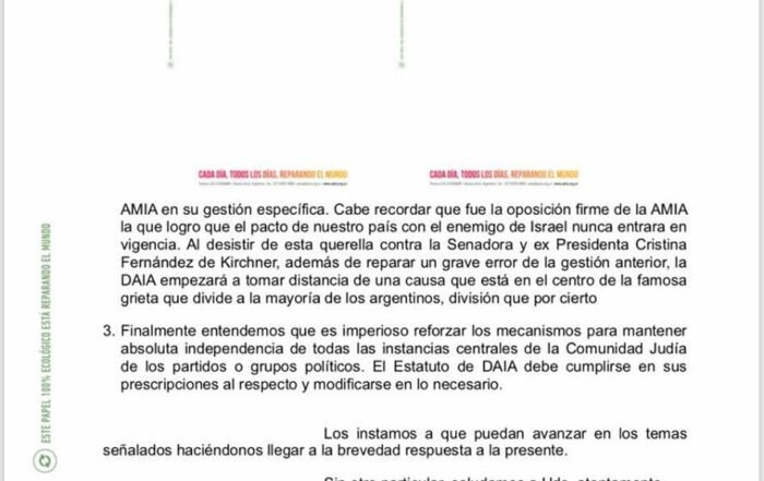 LA FEDERACIÓN DE ENTIDADES CULTURALES JUDÍAS (ICUF ARGENTINA) ANTE LOS ÚLTIMOS ACONTECIMIENTOS DE LA COLECTIVIDAD