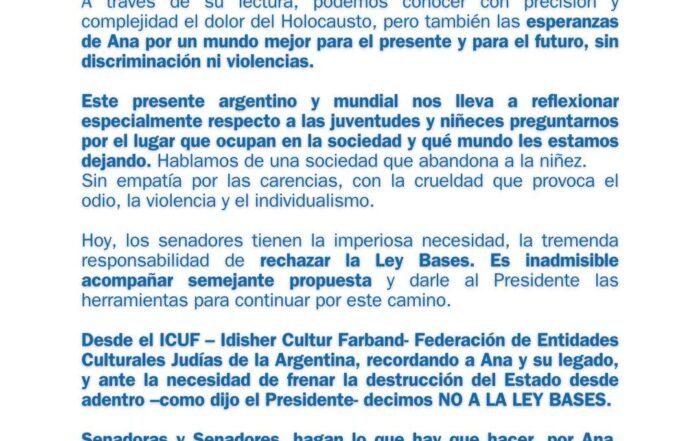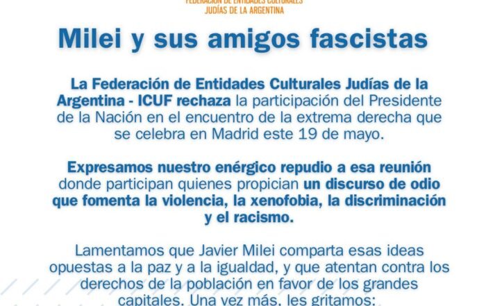 La Federación de Entidades Culturales Judías de la Argentina - ICUF rechaza la participación del Presidente de la Nación en el encuentro [...]