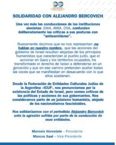 Nos solidarizamos con el periodista Alejandro Bercovich ante la agresión sufrida por parte de la conducción de esas entidades.